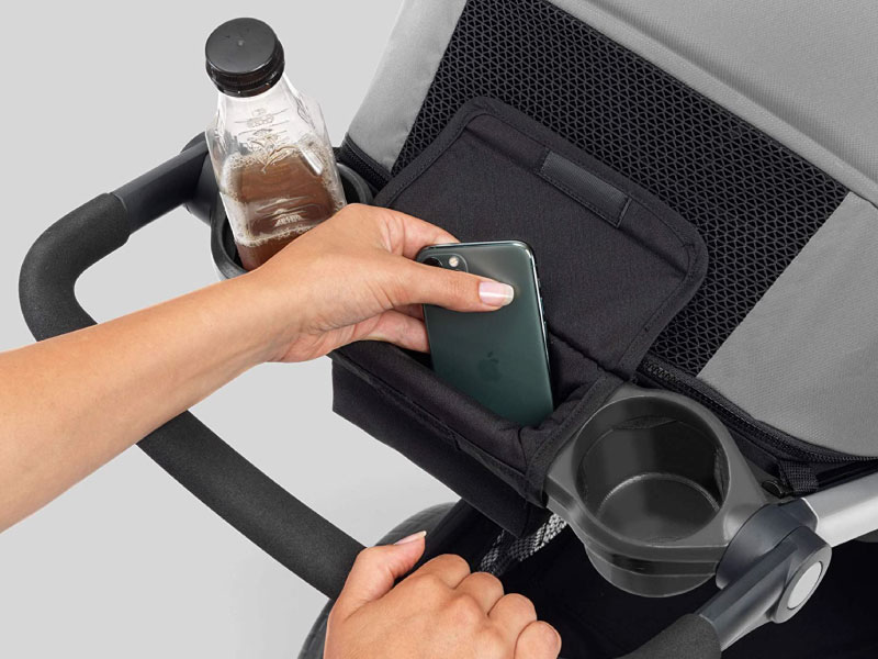 - 3-position adjustable push handle and parent tray with two cup holders & storage